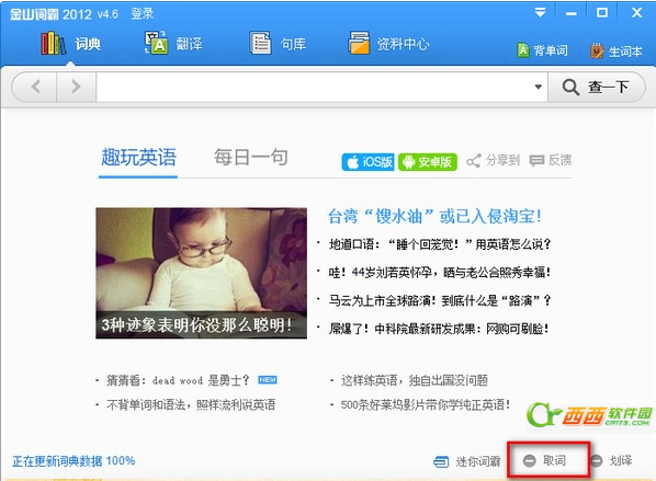 金山词霸是一款做的汉棒的词典翻译软件,涵盖的内容很广,每当我们要找翻译软件的时候,脑海的第一印象就是金山词霸。