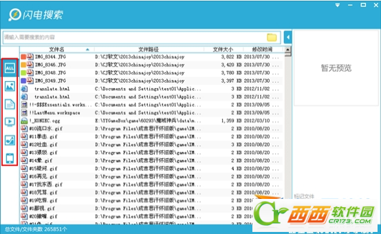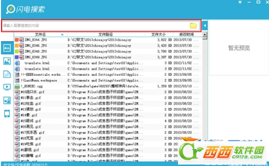 在电脑里要找到某个不知道存储位置的文件,最快捷的方式莫过于使用搜索功能了,如果是在Windows XP系统中,搜索的速度可谓是龟速,白白浪费了用户不少时间,好在目前Windows 8的搜索功能已经比较的给力了,不过还是有许多用户习惯的使用一款本地文件搜索辅助工具,以便于快速的找到某个文件。为了方便大家节约搜索时间,特向大家介绍这款软件——闪电搜索。