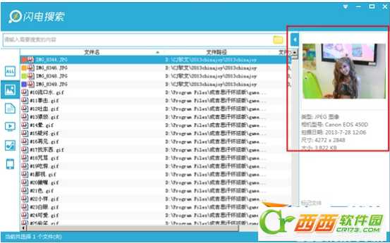 3、文件预览区——可以预览图片、PPT,目前还未支持文档和音视频的预览。预览包括文件大小,创建时间,甚至拍摄所用的相机机型!预览区左上方的蓝色小箭头,可以收放预览区,满足部分用户不便预览的需求。(搜索啥文件才会不方便预览哦?小编很好奇~)