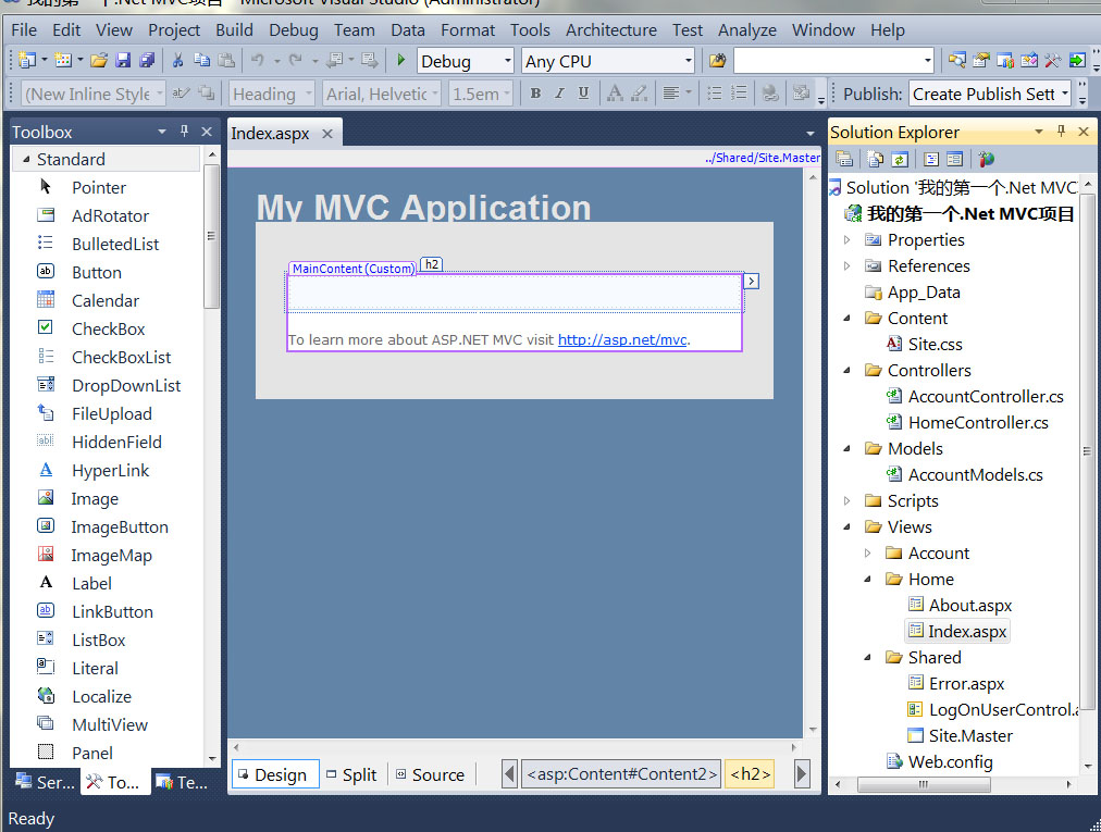 在mvc概念出现n年后的今天,.net平台上终于有了自己的mvc框架。beta版本的vs一直不想去试,好东西要等到最后。今天RTM总算是完成了,感谢Russian兄弟,能让我及时用上这个新版本。