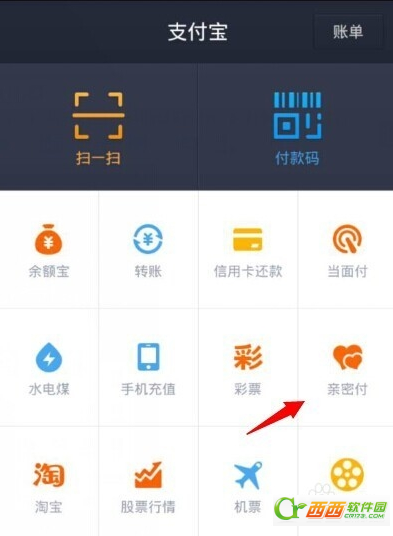 1、进入支付宝钱包8.3中以后在支付宝的界面中点击亲密付。