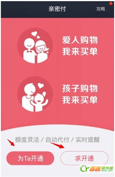 2、亲密付可以是你为TA付款,也可以是TA为你付款。看自己的情况吧!操作也是差不多的。本人作为爷们只有支付的份。所以为TA开通。
