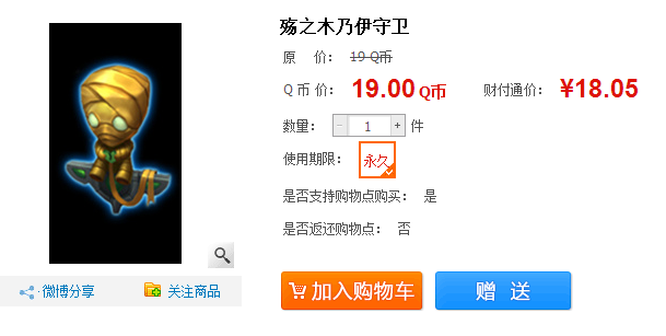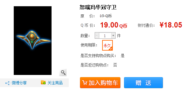 购买地址:http://daoju.qq.com/lol/item/918.shtml