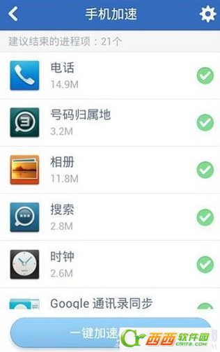 如果你认为手动关闭麻烦,还可以安装第三方工具实现一键清理,比如腾讯手机管家、百度卫士等。启动相应第三方工具,就能看到“手机加速”功能,点击加速,软件会自动将不用的程序关闭,释放更多的内存。