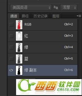三、把不需要换色的部分用白色画笔涂掉,再按【ctrl】键点击通道做出选区,如图下