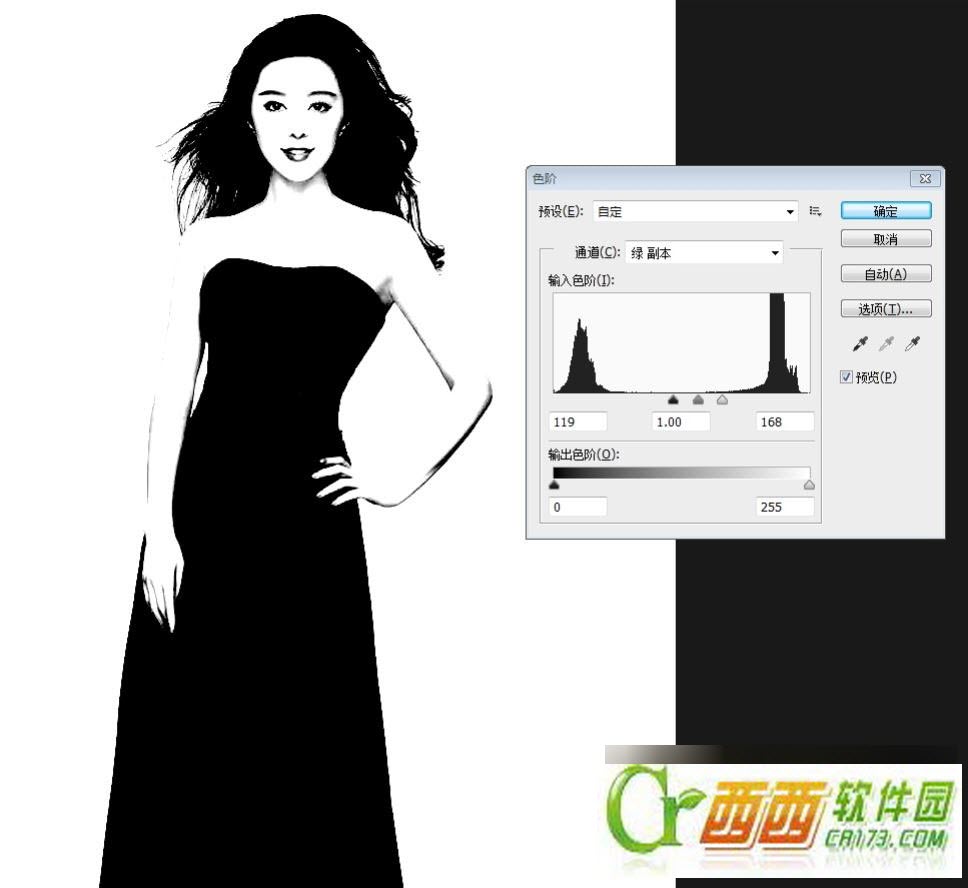 二、选中绿副本按【ctrl+l】调出色阶进行设置,参数如图下