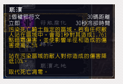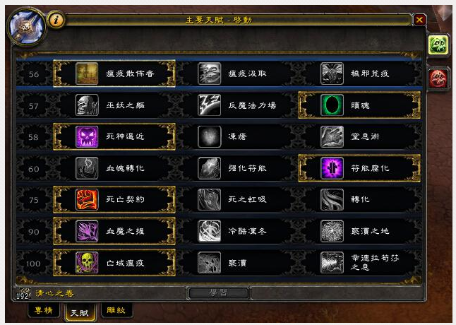 第一层 当前版本邪DK主要输出还是疾病比例占的很大,而且邪DK必定要点100层的亡域瘟疫天赋,这个天赋可以增加疾病的层数,配合脓疮打击让疾病15层更多的在目标身上从而提高DPS。