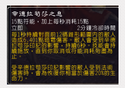 第五层 死亡契约的变动比较大,现在是恢复50%的血量,但是你身上有一个25%的吸收治疗量的DEBUFF,也就是说当你吃宝宝以后需要加一定的血量才可以再获得治疗,现在把这个天赋和糖放在一起的朋友注意了,一定要先点糖在点死亡契约,否则糖的治疗量就被DEBUFF吸收了。