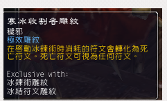 一般坦克会选择寒冰收割者雕文,来应付BOSS一些大技能。