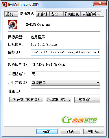 2.在快捷方式的属性-目标最后加上 +com_allowconsole 1(不确定要不要+号)