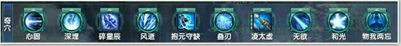 此心法输出手法与上述大致相同,不同点在于此奇穴不打天地无极,在物我两忘35S的输出循环内,以无我无剑,八荒归元,三环套月作为输出技能进行DPS,技能优先级相同。