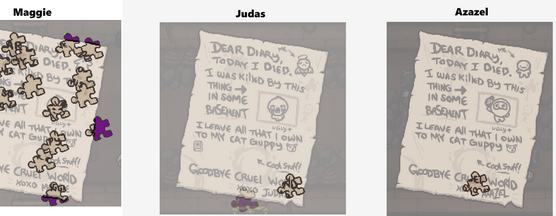 功能:击杀敌人时有概率掉落半个红心。带着此饰品在献祭房死于献祭,死亡界面上的凶手栏将会显示一片拼图碎片。