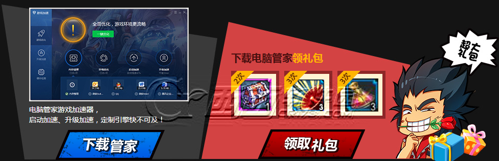 活动时间1月10日-18日内,下载并登录电脑管家,即可领取礼包,每QQ限领一次