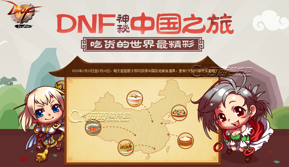 2015年1月15日至2月10日,每天摇摇骰子即可获得中国各地美食道具,更有7天契约等你来拿哦!