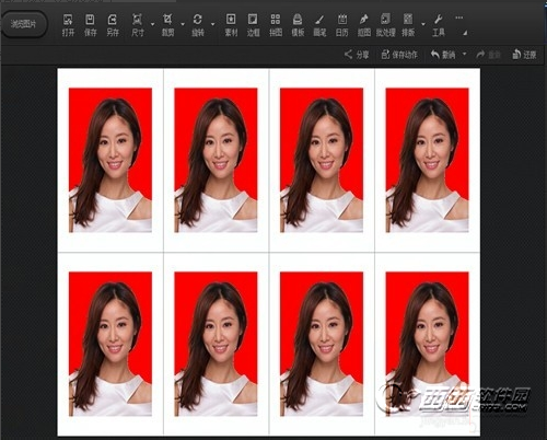 7、点击排版,在下拉框中选择“8张1寸照”,自然你也可以根据实际需要选择其它排版样式。最终效果如下图,还可以吧。