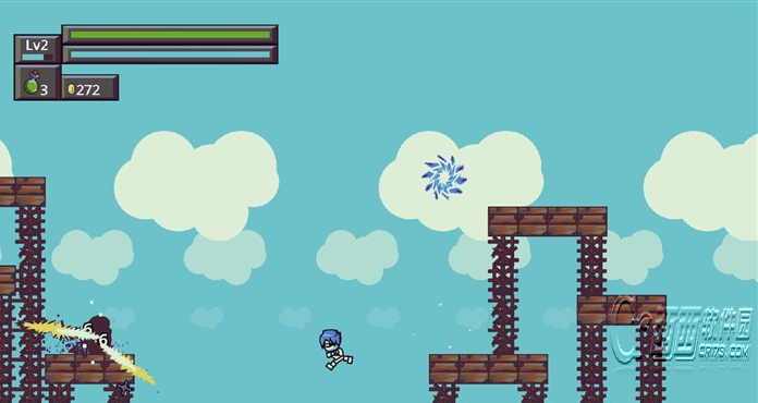 绿衣忍者攻击方式是跳跃攻击,跳到空中往下发射飞镖,命中率低,不容易被击中,蓄力攻击是发射一个绿球为自己回复生命值无伤害