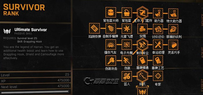 在恐怖生存新作消逝的光芒游戏中,玩家需要学习各种技能以便更好的完成任务,游戏中的技能有三类,分别是生存技能(Survivor)、敏捷技能(Agility)和力量技能(Power),每一类的技能有独特的技能树,技能学习需要获得对应的技能点数来分配。下面小编就来为新手玩家们详细的介绍技能树学习要点,消逝的光芒全技能解析如下。