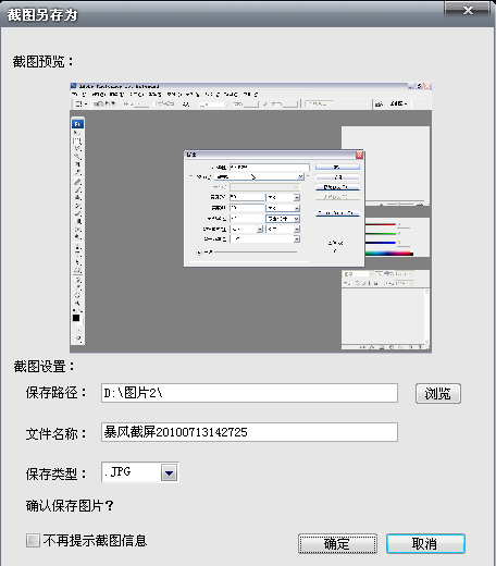 3、截屏,然后会打开“截图存取为”的属性图片: