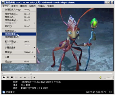 PS:旧版的暴风影音截图类似,首先播放视频,到待截取画面处暂停播放,选择“文件→保存图像”将其保存为bmp或jpg格式。