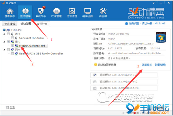 2)选择驱动程序→显卡(有双显卡的选择独显)→选择旧版本驱动进行回滚驱动