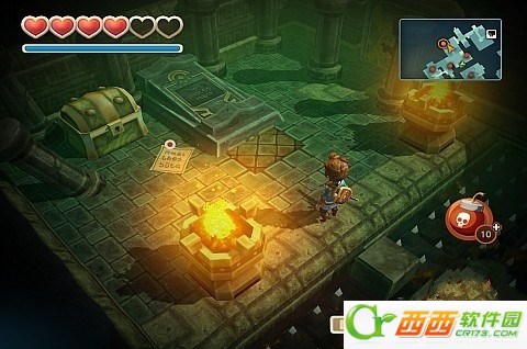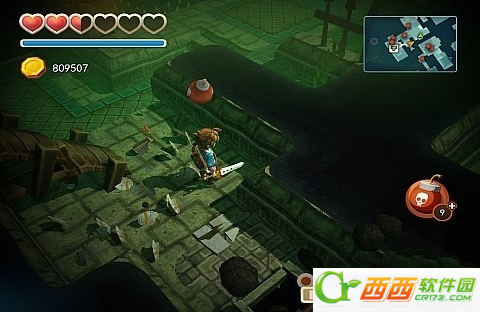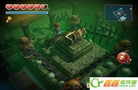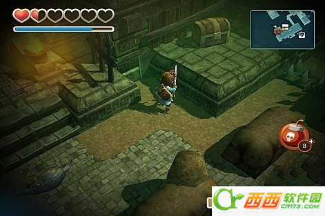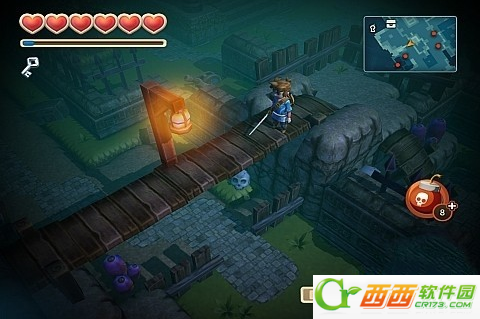 往前走,来到一个目的,这里需要用炸弹炸开,会露出下面的宝箱,拿到钥匙。