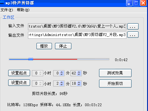 MP3铃声剪切器是一款快速、准确切分MP3音频的工具软件并且现在2.0版已经免费使用了,可以切割mp1、mp2、mp3、wav、mpg等格式的音频。支持任意采样率和比特率,支持任意文件大小,可以快速切分几秒到几小时的音频。直接分析音频数据结构,毫秒级精度,无重新编码,完全保持原始音频质量。