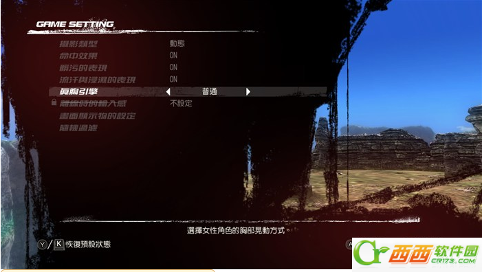 到主菜单option里面gamesetting,真胸引擎,off右边第一个就是绝伦