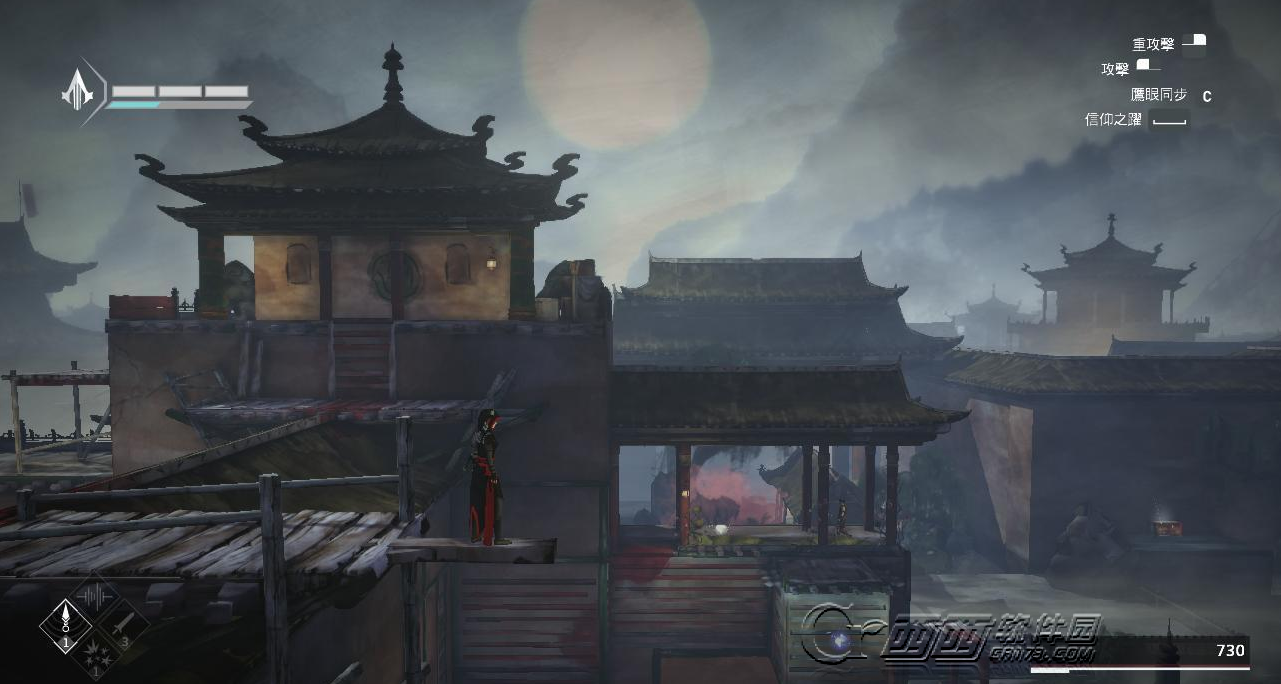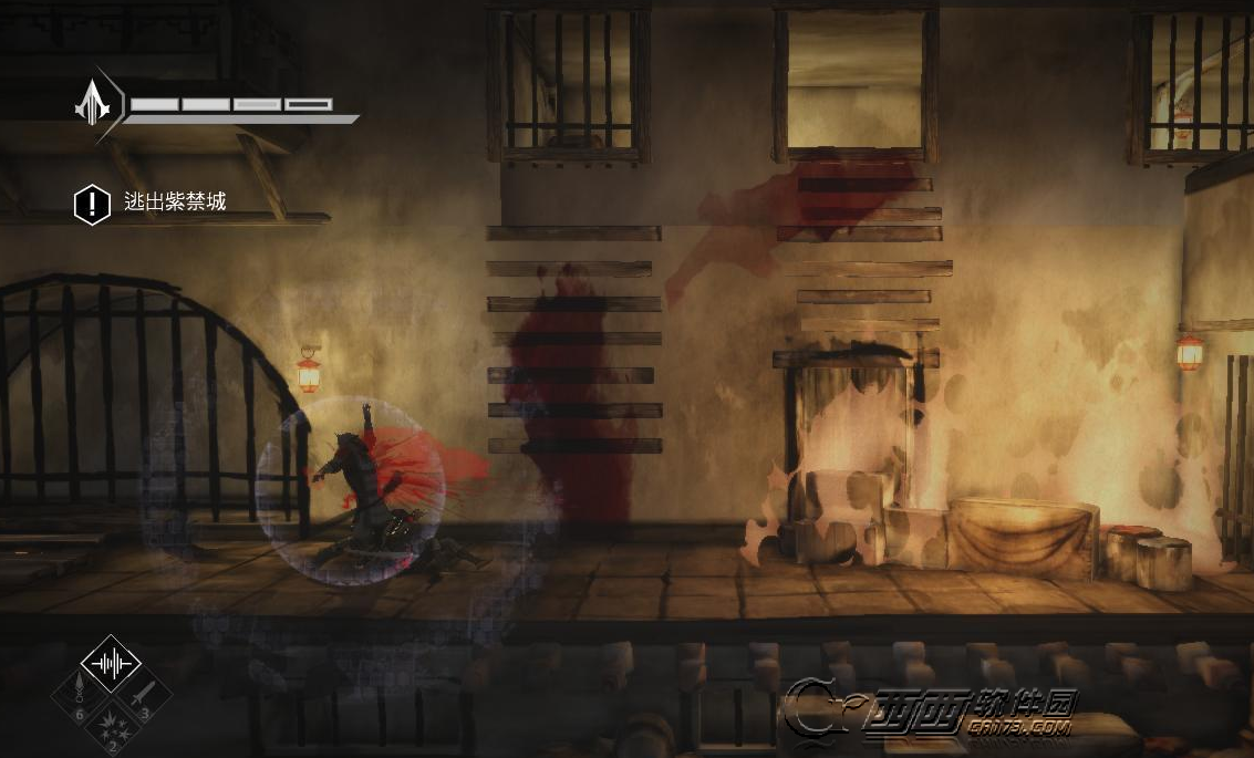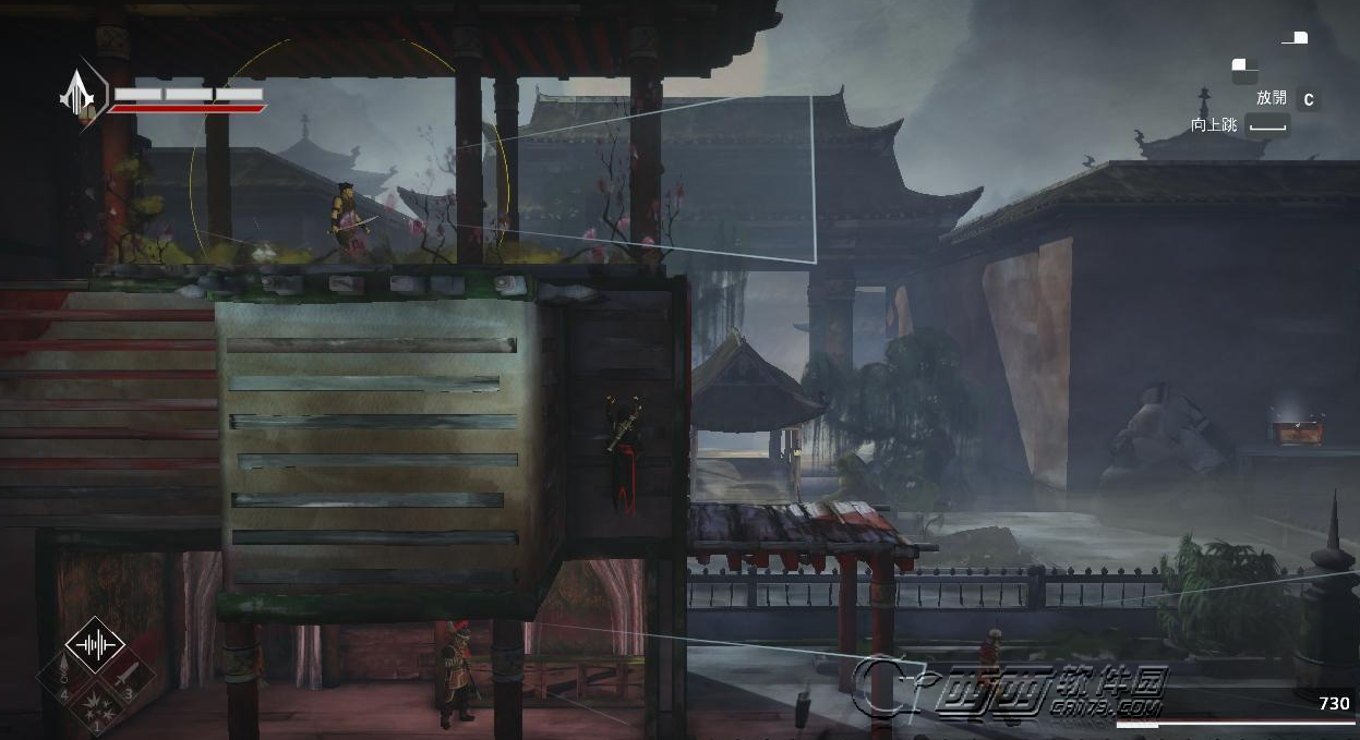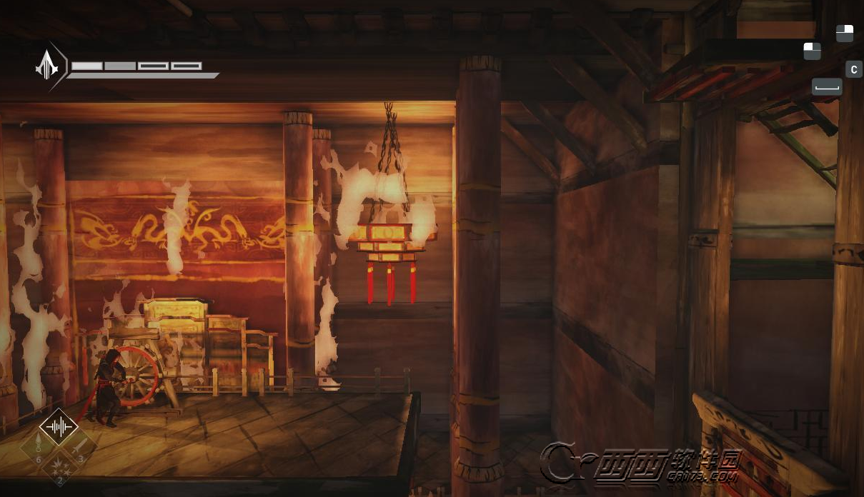 前面需要拯救一个嫔妃,并且有三个敌人,从墙壁上悄悄过去。