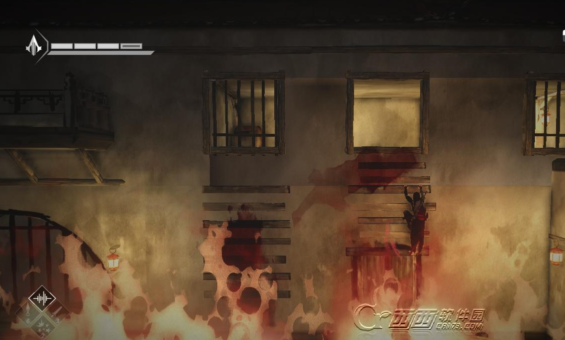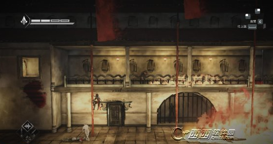 从窗户跳下来,刺杀掉在下面的一个敌人,快速爬上栏杆。