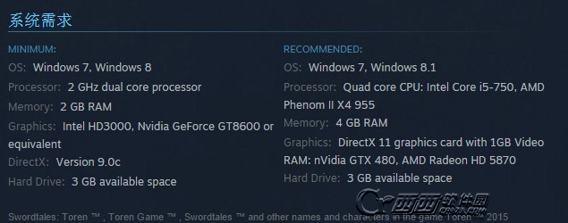 显卡:Intel HD3000, Nvidia GeForce GT8600 or equivalent