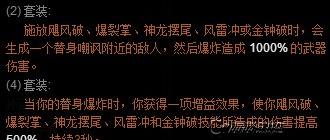 施放飓风破、爆裂掌、神龙摆尾、风雷冲或金钟破时,会生成一个替身嘲讽附近的敌人,然后爆炸造成 1000% 的武器伤害。