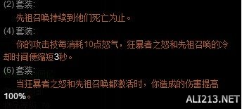 当狂暴者之怒和先祖召唤都激活时,你造成的伤害提高100%。