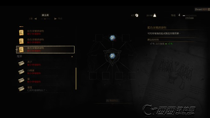 当然突变诱发物的作用并不仅仅于此,在炼金术菜单中也是可以进行突变诱发物的炼金,用多个诱发物合成属性更高级的突变诱发物(前提是点了更高级的炼金术技能)。
