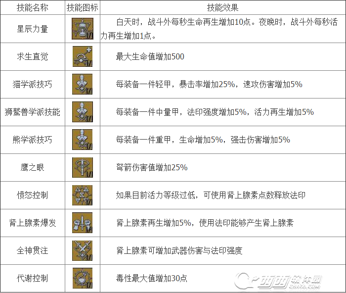 能力类技能主要是辅助类型,共有10个,和其他类技能不同的是不需要等级解锁,初始即可全部学习到,只是需要能力点,下面就带来全部的能力技能效果。