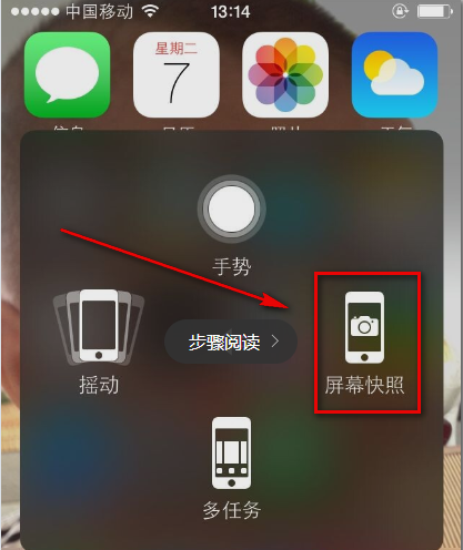 用手单击一下小圆点,单击一下设备,更多,屏幕快照,截取当前屏幕。