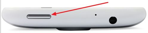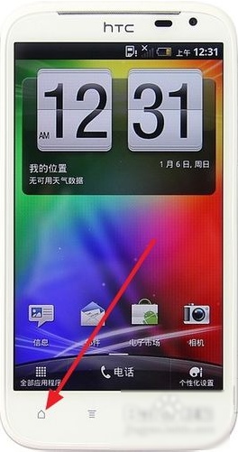 首先,先按住HTC手机的电源键不放,如下图红色箭头所指的位置。