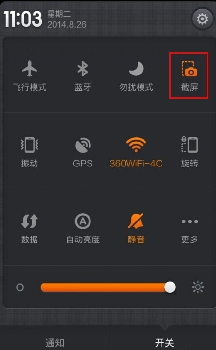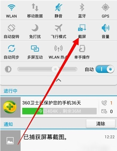 如果另一个手不方便的时候,无法同时按住快捷键截屏的时候,可以在下拉菜单,直接点击“截屏”键,即可完成截屏如图。
