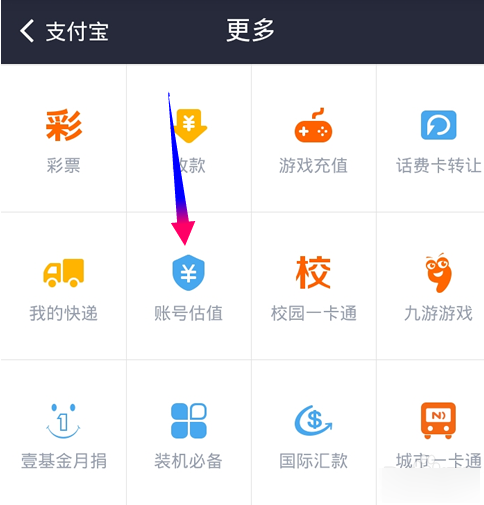 [账号估值]到底在哪里呢?一般这个功能不会直接出现在支付宝的主界面上,不过你可以点击[更多]找到
