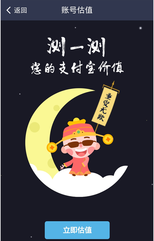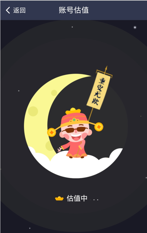 咦?系统背景怎么是晚上+月亮的呢?难道是因为我现在是凌晨的原因吗?非也,这个账号估值就是这样背景,什么也不用想点击[立即估值]