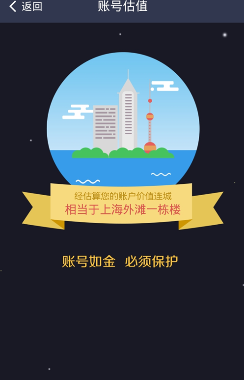 注意:账号估值纯属是一个安全提醒,请时刻保持帐号的安全。