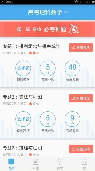 4.预测热门考点:基于您的地理位置,智能推荐您所在考区最热门的知识点!