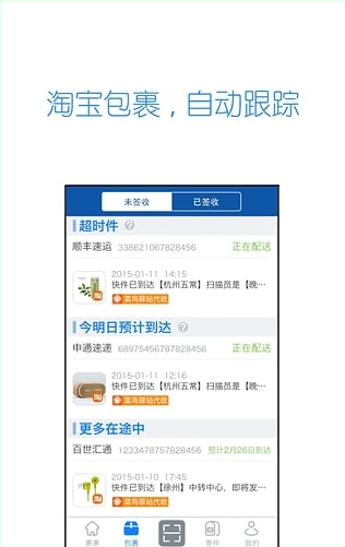 1、包裹跟踪: 淘宝、天猫包裹物流信息快捷查看,淘宝账号登录自动关联淘系网购订单,关键物流节点推送提醒;