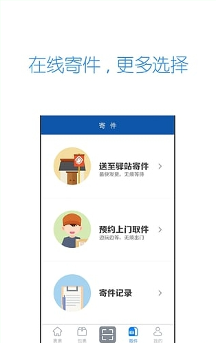 4、系统自动定位附件寄件站点,用户手机提交订单,站点提供电子面单等无需手写的增值服务,轻松寄件,官方授权服务有保障;同时,提供主流快递的服务热线,用户也可预约快递员上门取件;