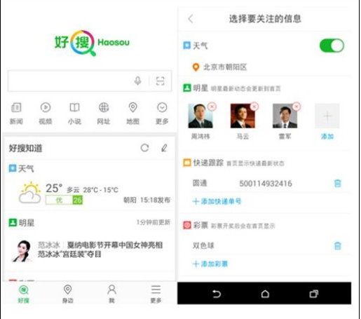 近日,很多人发现好搜安卓更新了一个新功能好搜知道,好搜知道里有您想了解的明显动态,您可以查询快递,一键知道汽车摇号通知、违章通知等查询功能。还可以根据自身需要添加相关内容。这样可以缩短搜索时间从而减少信息获取时间,进一步优化了用户的搜索体验。