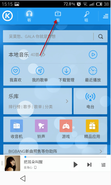 有些时候大家听过已经不仅仅局限于仅用耳朵听,同时还要观看精美的MV,那么小编今天就教大家如何通过手机酷狗下载MV并观看。