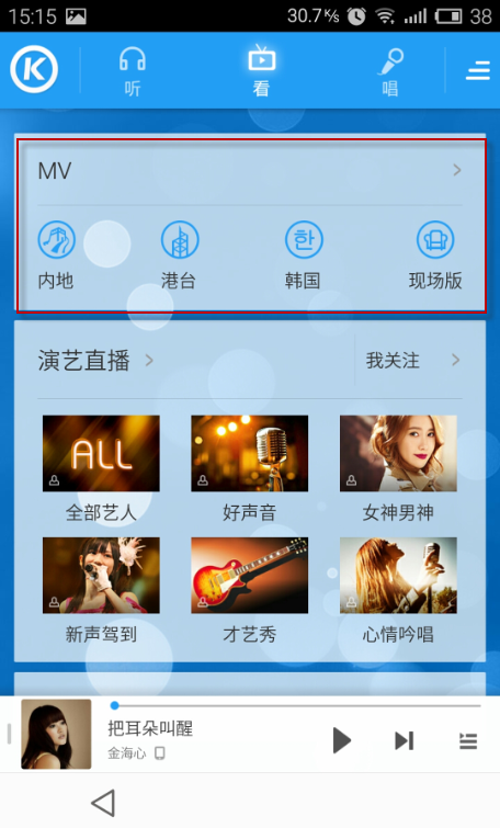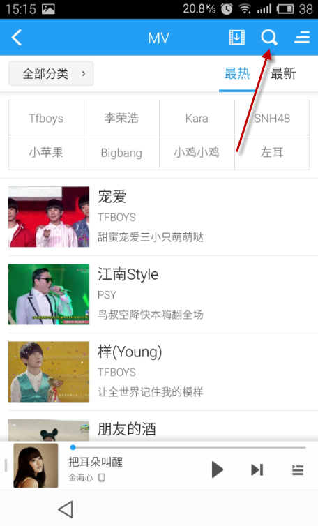 3、在分类里的最新、最热里选择mv,也可以直接搜索