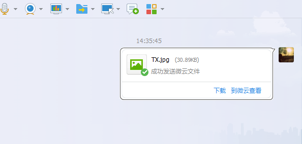 7、发送文件完毕,在页面上会显示成功发送微云文件
