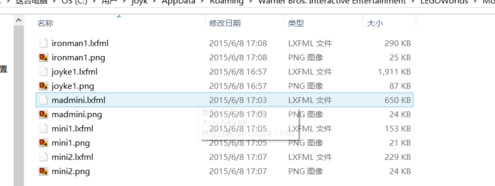 然后,将后缀为lxfml和png的文件放到C:\Users\自己的用户名\AppData\Roaming\Warner Bros. Interactive Entertainment\LEGOWorlds\Mods\Models