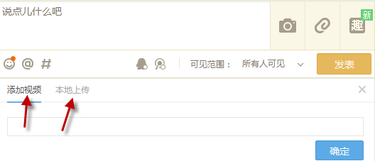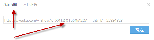 2、点开上传视频按钮有二个方式上传视频,一个本地上传,一个是添加网络视频地址