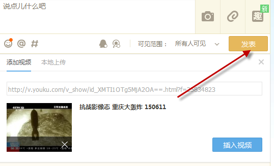 3、插入视频后,配些文字然后就可以发表视频说说了